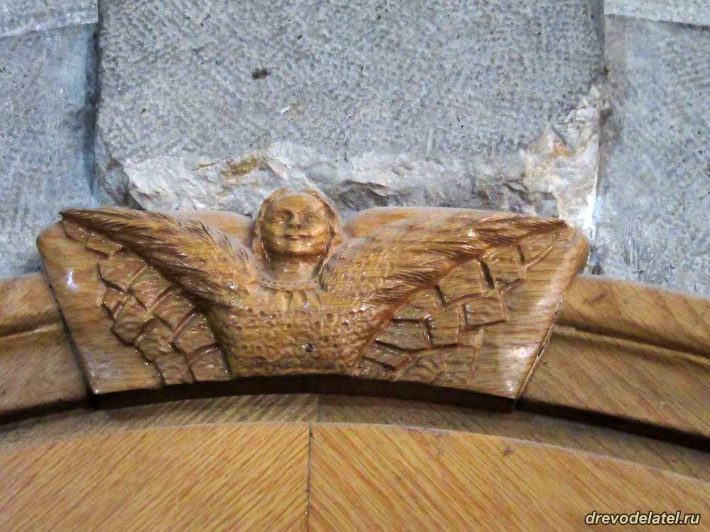 Выходя из Храма, обратил внимание на скромную кафедру и резного ангелочка на дверном наличнике.