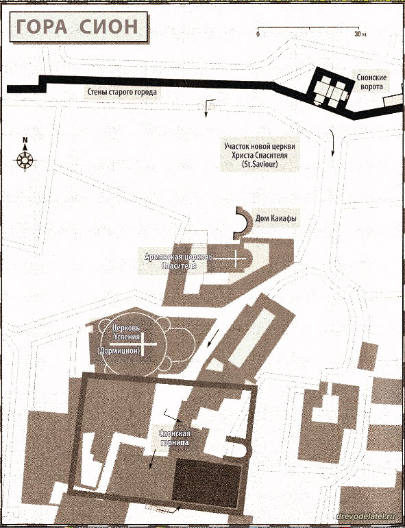 Вот что написано о святынях горы Сион в современных путеводителях: «Находящаяся на горе Сион так называемая «Сионская горница» – одна из важнейших святынь христианского мира. Она почитается наравне с Храмом Воскресения Христова в Иерусалиме, церковью Рождества Христова в Вифлееме и базиликой Благовещения в Назарете.