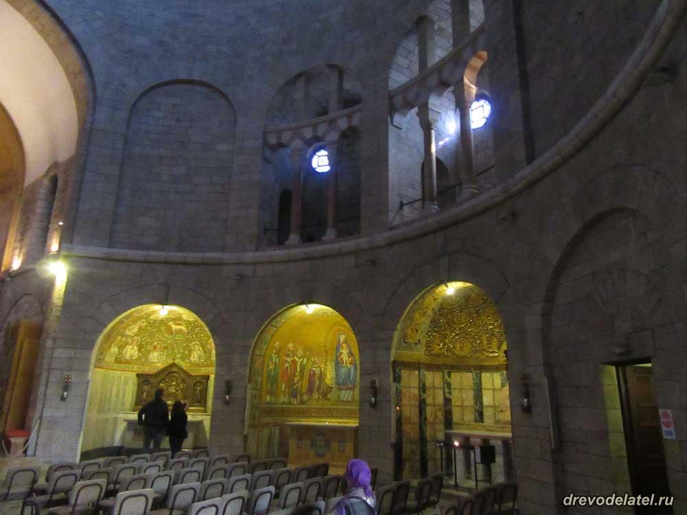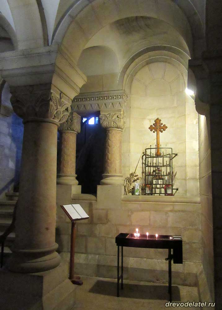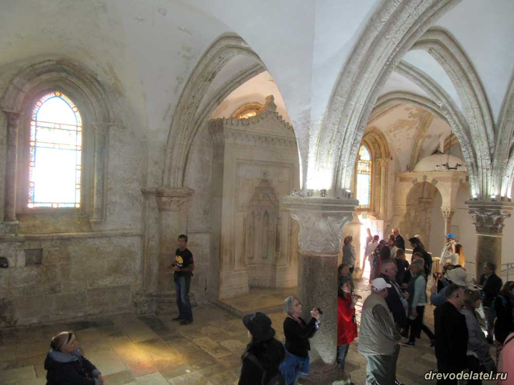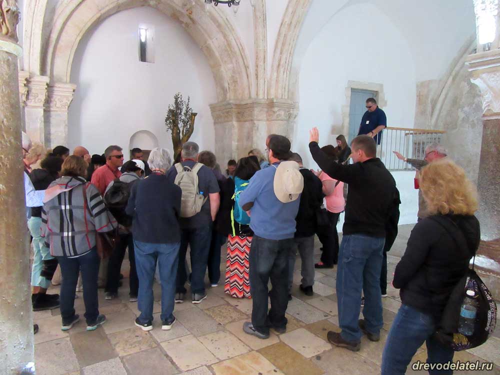 Из Гробницы Пророка Давида мы пошли в Горницу Тайной Вечери и Сошествия Святого Духа на Апостолов. Это скромный зал с часовней Сошествия Св. Духа и старинными колоннами, поддерживающими своды.
