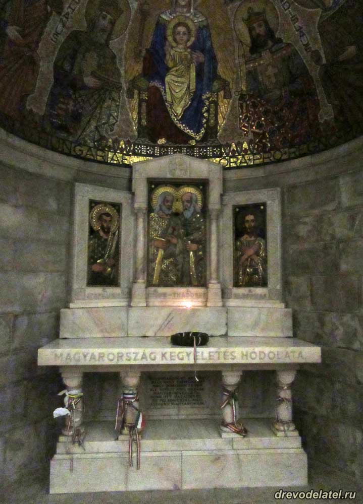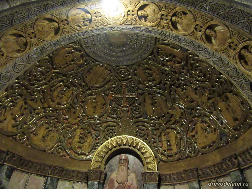 Вокруг сени со статуей Девы Марии расположены искусно сделанные престолы разных стран и церквей.