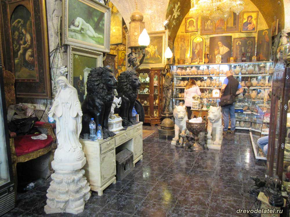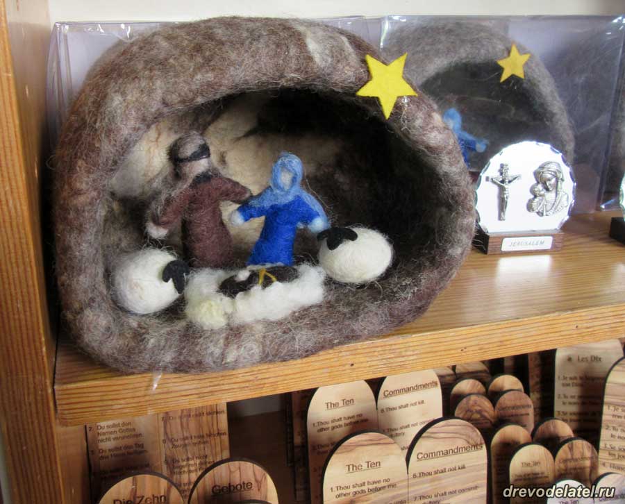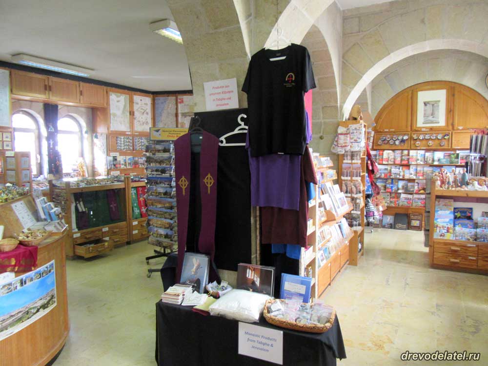 Магазин при Церкви Успения мне очень понравился — огромный ассортимент на все вкусы, невысокие цены, действительно интересные товары, а не однообразные штампованные поделки, как в лавках в Старом Городе. Купили в магазине буклет про Галилею на русском за 10 шекелей.