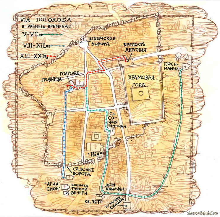 Немногие знают, что именно здесь в ранневизантийский период пролегала завершающая часть Страстного пути, а традиция, связанная с нынешней Виа Долороза и почитаемыми на ней девятью остановками, окончательно сложилась только в прошлом веке.