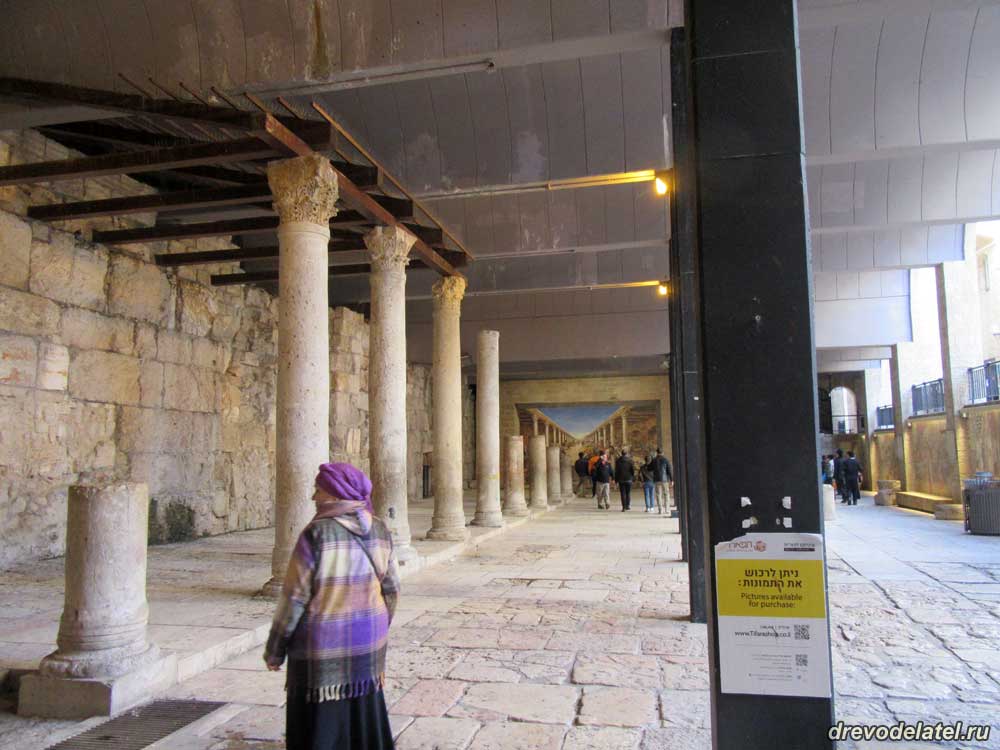 И где-то посередине улицы Хабад мы видим внизу ряд колонн. Это и есть начало раскопанной улицы Кардо.