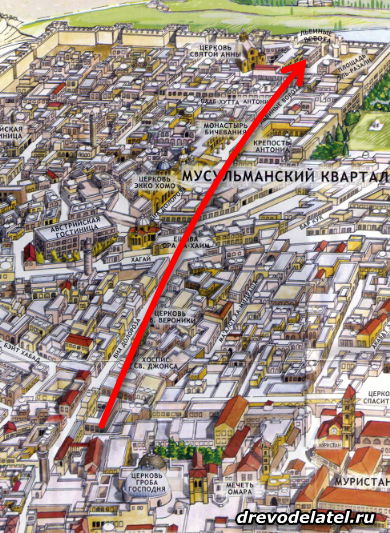 Условный маршрут от Храма Гроба Господня к Львиным воротам