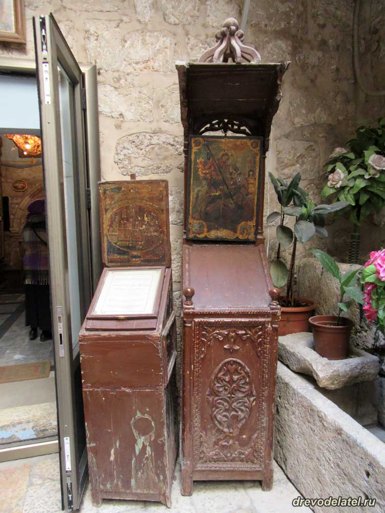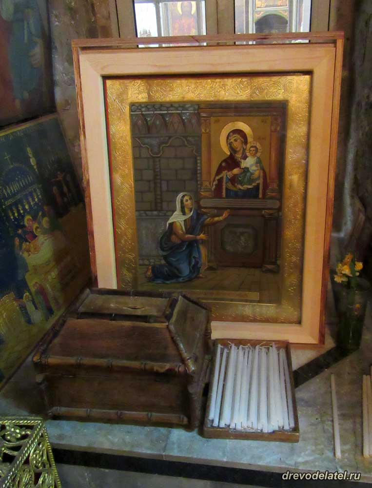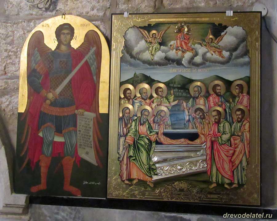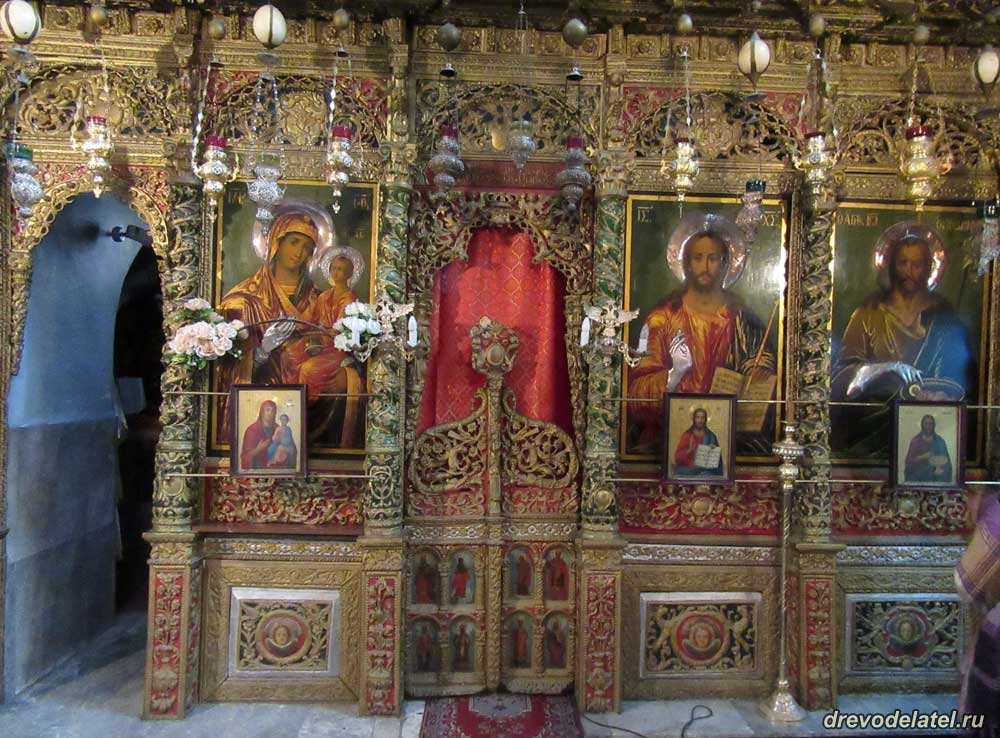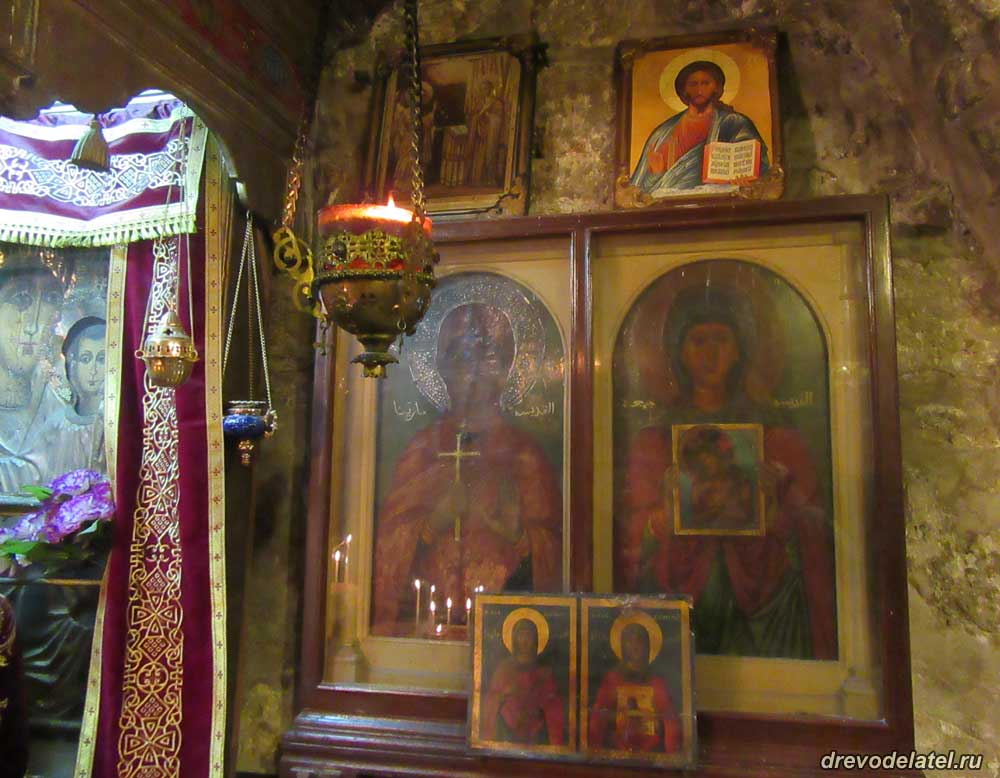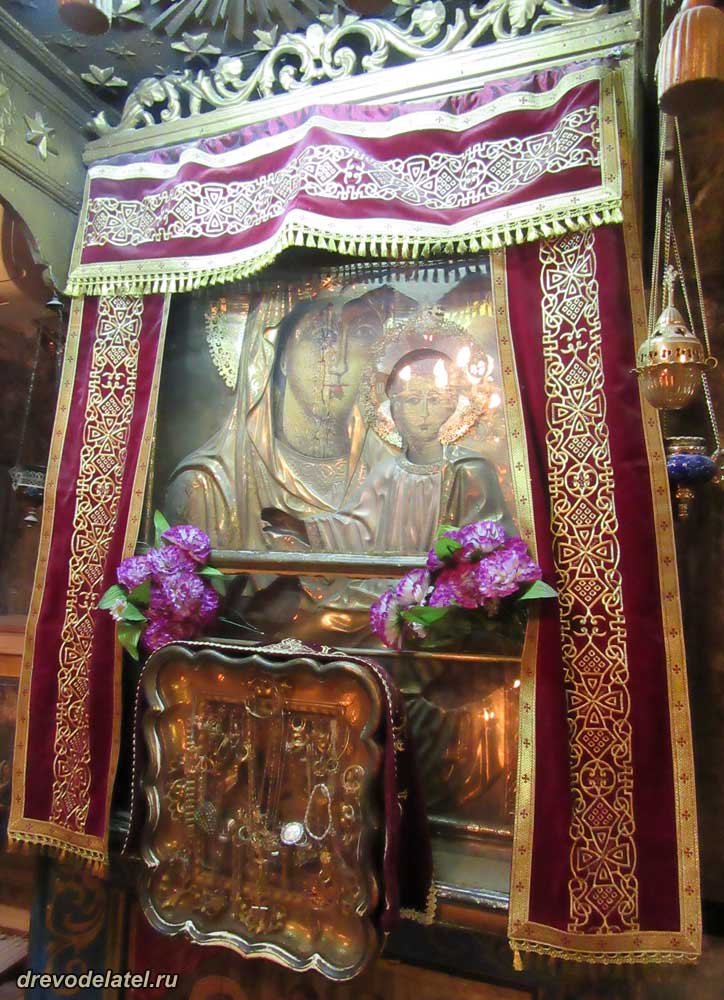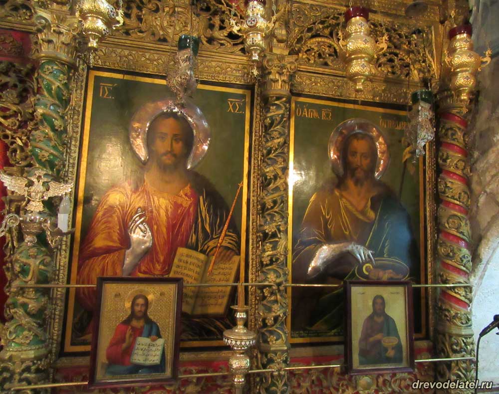 Интересная особенность иерусалимских иконостасов — храмовые иконы дублируются маленькими аналогичными иконами.
