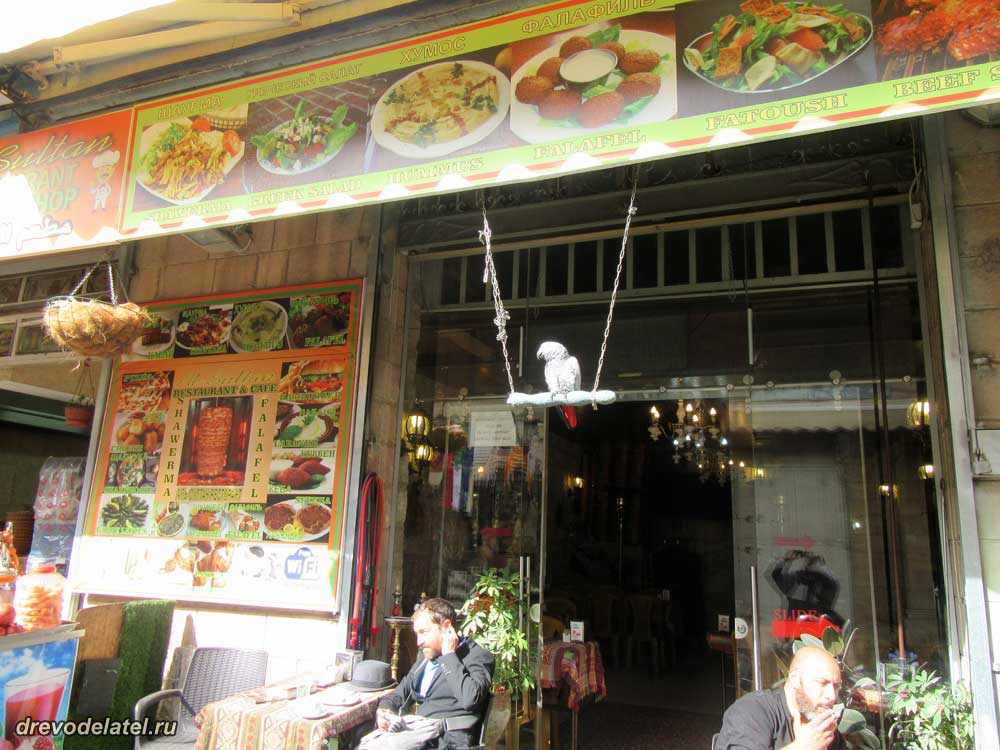 Попугай при арабском ресторане.