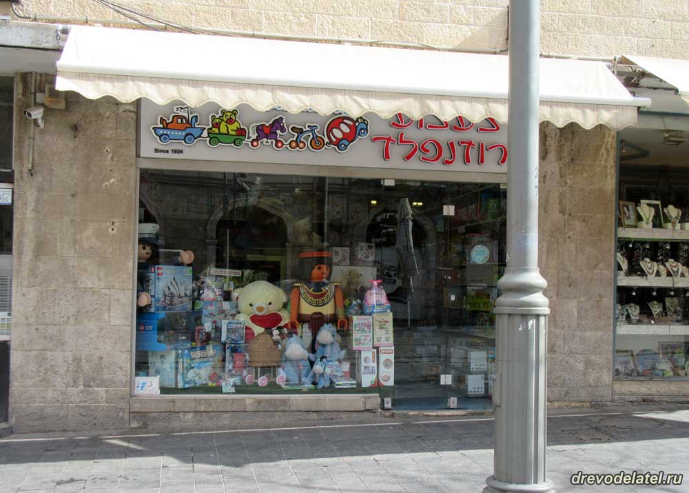 Магазин игрушек. В витрине Лего на иврите и Монополия на тему Иерусалима.