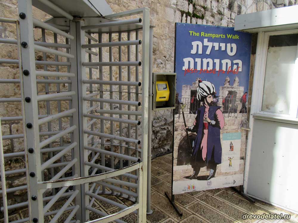 Чтобы подняться на северную стену с билетом-талончиком с южной стены, нужно обратиться в информационный центр рядом с Яффскими воротами. Девушка из центра прошла с нами и открыла нам проход на стену.