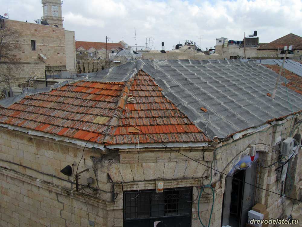 Сразу оба вида основных видов кровли в Иерусалиме — черепица и рубероид.