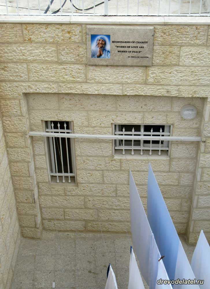Внутри на плакате с Матерью Терезой призвание к любви и миру.