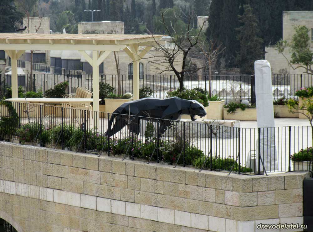 Статуя пантеры на ресторанной площадке снаружи стены.