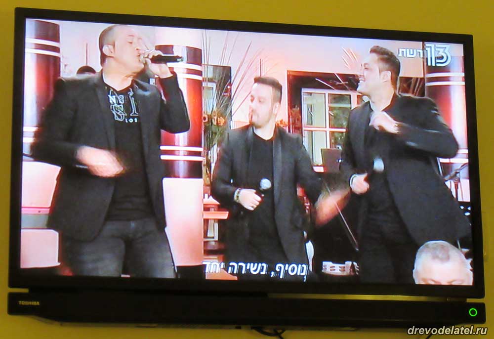Из-за непогоды мы отказались от прогулки и решили просто отдохнуть за просмотром израильских телеканалов, которые работали несмотря на шаббат. Прежде всего я обратил внимание на то, что полностью обеспечена поддержка неслышащих людей — абсолютно все передачи и фильмы сопровождаются субтитрами, а новости — сурдопереводом. Иностранные фильмы показывают на языке оригинала и с субтитрами.