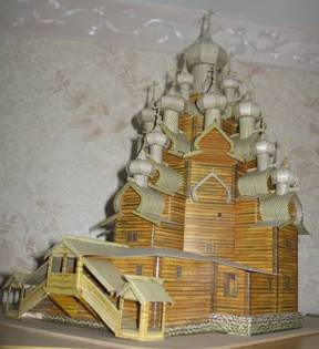 А эта часовня св. Архангела Михаила в Кижах – издание петербургской фирмы «УмБум», издавшей несколько макетов известных шедевров русской архитектуры. Это как раз модели «УмБум» сделаны по принципу «сборка без ножниц и клея», и очень удобны при сборке. Но очень неудобны при сканировании, и будет очень жаль, когда они пропадут из продажи. Тем более, что, к моему огромному сожалению, уже два года, как «УмБум» не издаёт ничего нового. Вообще, в отличие от заграницы, издание в России бумажных макетов наших, русских, архитектурных достопримечательностей крайне скудно – захиревший, похоже, «УмБум» да «Бумажное Моделирование», издавший Московский Кремль и несколько храмов, больше я и не знаю.