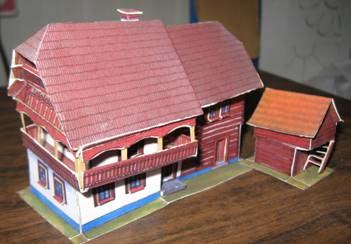 Эти домики тоже склеены из сканов. Я очень люблю такие макеты – во-первых, это просто красиво; во-вторых, при нынешнем засилии коробочных сооружений образцы старинных зданий – как свежий воздух для души; в-третьих, в таких макетах, как и в книгах и альбомах, можно почерпнуть немало идей для своих изделий в плане оформления. А уж для украшения своего деревенского или дачного участка – тем более. А если дача либо дом в деревне отсутствуют, тем более такие макеты радуют – не выходя из дома, созерцаешь деревенскую идиллию ;-)