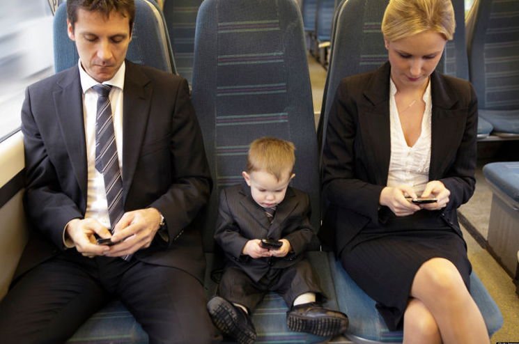 По мере того как родители увлекаются технологиями всё больше и больше, общения между ними и их детьми становится всё меньше и меньше. И детям, в свою очередь, остаётся только «подружиться» с девайсами по примеру мам и пап. По состоянию на 2009 год каждый из 11 детей в возрасте от 8 до 18 лет испытывал зависимость от технологий.