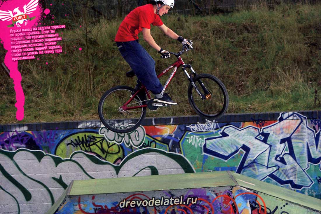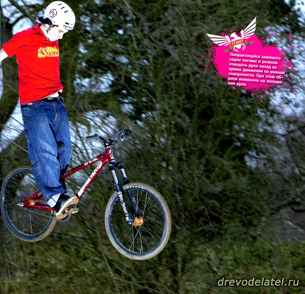 Внимание: учитесь прыгать на специально подготовленном прыжковом велосипеде, в шлеме и защите рук/ног/тела, в присутствии более опытных райдеров! Помните — экстремальное катание на MTB травмоопасно!