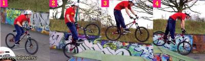 Успех выполнения этого трюка во многом зависит от правильной настройки велосипеда. Первостепенную роль играют выбор седла и его положение (смотри советы Чоппера по настройке велика). И для начала лучше попрактикуйся на фанбоксе или трамплине со столом, а уже потом пробуй сделать трюк на дёртах.