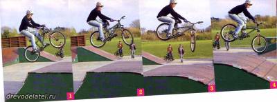 3. Руль должен быть повёрнут на 90 градусов, ты должен свешиваться сзади байка и крепко держаться за седло, переднее колесо должно быть ниже заднего.