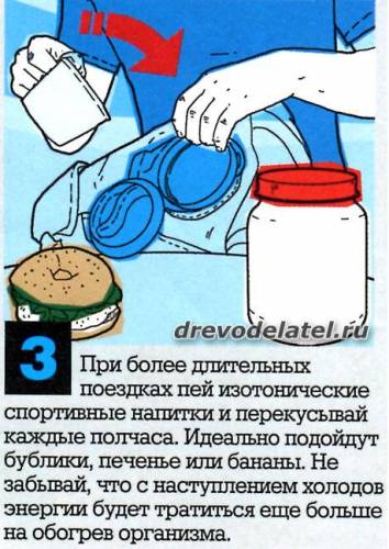 3. При более длительных поездках пей изотонические спортивные напитки и перекусывай каждые полчаса. Идеально подойдут бублики, печенье или бананы. Не забывай, что с наступлением холодов энергии будет тратиться ещё больше на обогрев организма.