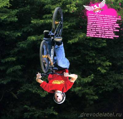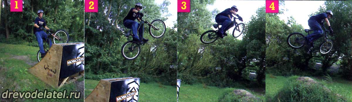 Внимание: учитесь прыгать на специально подготовленном прыжковом велосипеде, в шлеме и защите рук/ног/тела, в присутствии более опытных райдеров! Помните — экстремальное катание на MTB травмоопасно!