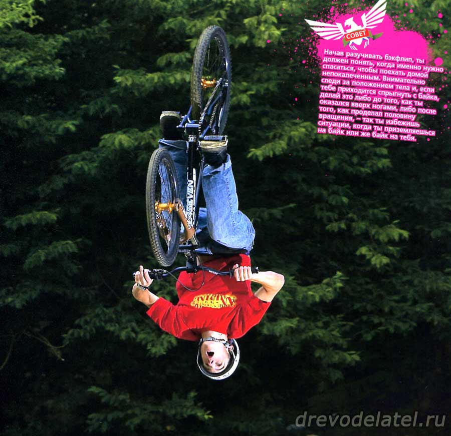 Хорошая новость — флипы довольно легко делать. Самое сложное — преодолеть психологический барьер и заставить свой мозг поверить в то, что находиться вверх ногами с байком на высоте двух метров от земли — это нормально.