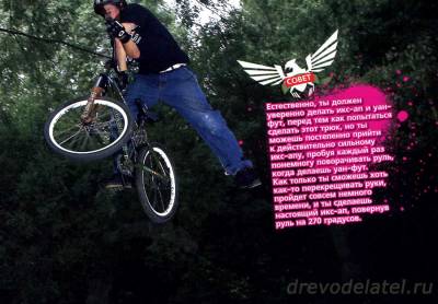 С точки зрения стиля, уан-фут икс-ап отличный трюк, чтобы сделать его посреди серии. Тебе нужно научиться сохранять расслабленность, чтобы сам трюк выглядел лениво, тогда ты точно поразишь всех. Благодаря тому, что твоя передняя нога находится не на педали, у тебя очень много места для колеса — ты сможешь легко перекрутить икс-ап. Выглядит это потрясно!