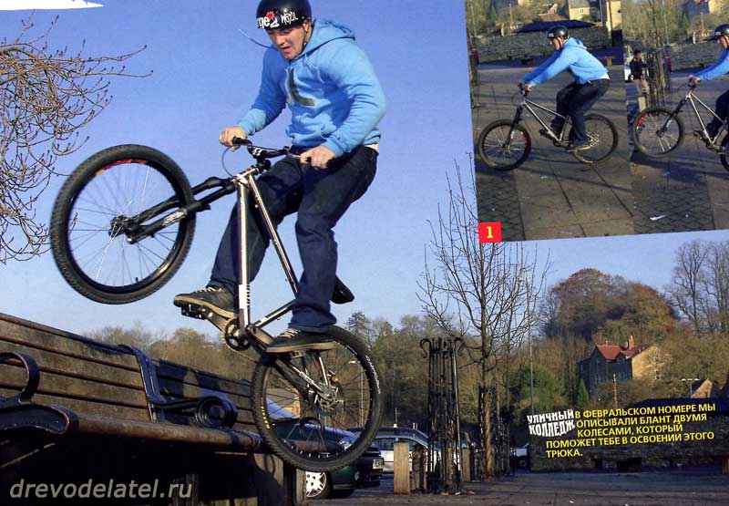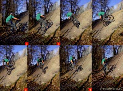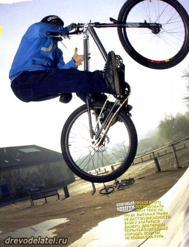 Учитывая тему нашего урока, эта фишка очень показательна, поскольку делается практически на пустом месте. Главное — немного фантазии и хорошее владение байком. В результате мы имеем трюк, для которого не нужна ни рампа, ни коупинг. Всё, что тебе потребуется — это средних размеров склон. А где ты его найдёшь: в скейтпарке или ближайшем лесу — совершенно неважно.