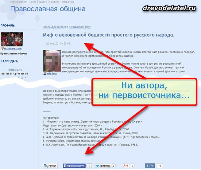 В одном православном Живом Журнале, созданном прихожанами РПЦ МП, разместили недавно интересный материал про мифы о бедности и нищете русского народа. Я перепостил этот рассказ в свой ЖЖ и уже собрался написать новость на своём сайте со ссылкой на рассказ в том ЖЖ, думая, что он и есть автор материала, при отсутствии указания других авторов и первоисточника, пока не поискал на всякий случай сам первоисточник.
