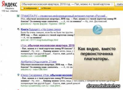Также есть специальные программы для проверки текста на плагиат, в которых, наверное, тоже есть возможность вычислить первоисточник, мне ещё не доводилось такими программами пользоваться, но при успешном опыте я обязательно отпишусь и о них.