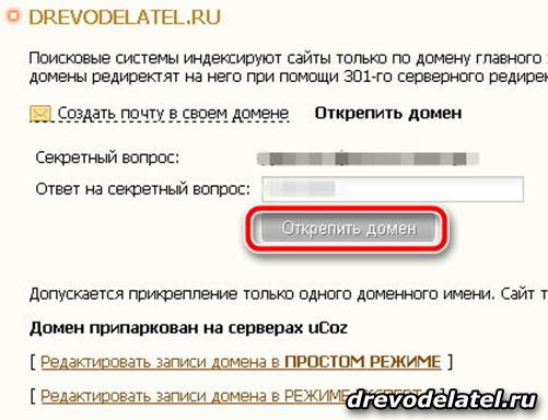 Отвечаем на секретный вопрос и снова жмём на «Открепить домен».