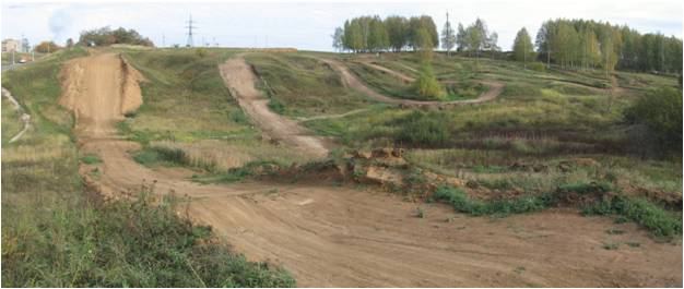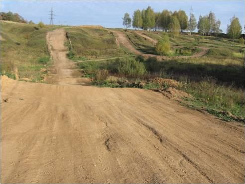 В настоящий момент трассы практически нет - всё изрыто промоинами от дождей, и все дорожки заросли травой. Если не знать, то трудно даже догадаться, что здесь была вполне хорошая трасса. Увы.
