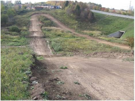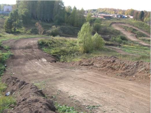 И точно – оказывается, силами местных энтузиастов возрождена (как я понял из каширского сайта) трасса для мотокросса, бывшая здесь ещё в советские годы. Конечно, я не преминул воспользоваться возможностью прокатиться по трассе! ;-) Тем более, что она доступна и свободна (по крайней мере, на тот момент).
