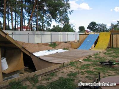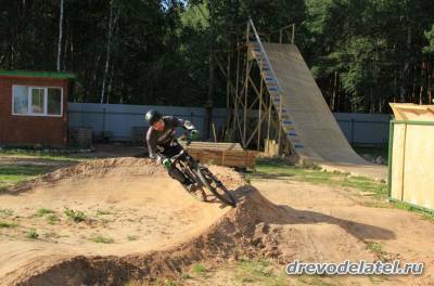 На верхней фотке справа от разгонки видно стартовый помост, на котором можно как стартануть в памп-трек, так и потренировать стойку.