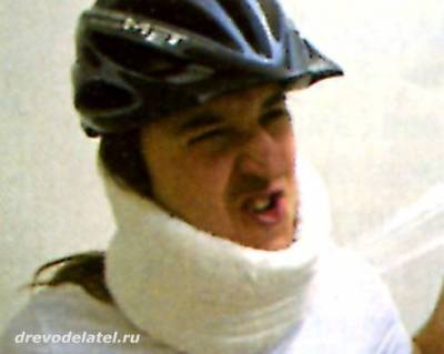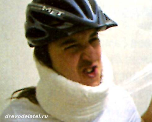 2. Если повреждения позвоночника нет, то, скорее всего, растянуты или надорваны (что бывает гораздо реже) мышцы или связки шеи. Первое, что ты должен сделать, — обеспечить неподвижность шеи. Лучше делать это при помощи воротника Шанца — купи упаковку ваты в рулоне и три широких бинта. Раскатай рулон ваты, сложи его вдвое и аккуратно обмотай бинтом — чтобы получился толстый ватный шарф.