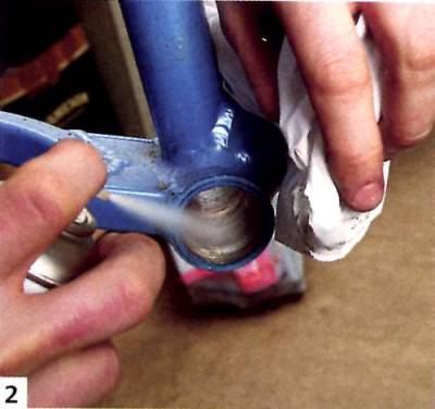 2. Полностью вычисти смазку с резьбы кареточной трубы рамы и с чашек самой каретки.