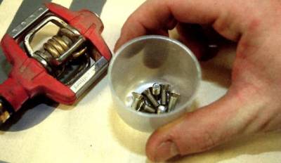 Болтики, винтики, шарики от подшипников и другие мелкие детали имеют очень неприятную привычку. При первой же возможности они разбегаются и прячутся по щелям, откуда их уже не достать. Поэтому очень полезно складывать всю мелочёвку в какую- либо ёмкость. Идеально подходят пластиковые крышки от спреев.