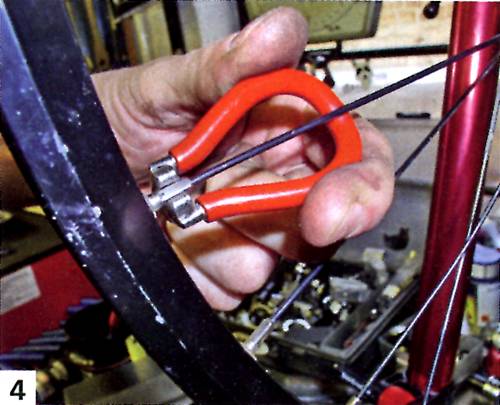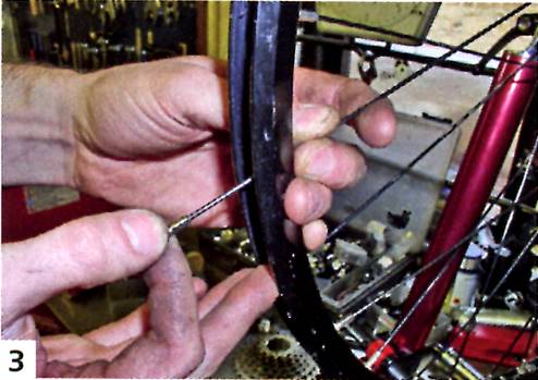4. В завершение, закрути другой конец спицы в ниппель с помощью спицевого ключа.