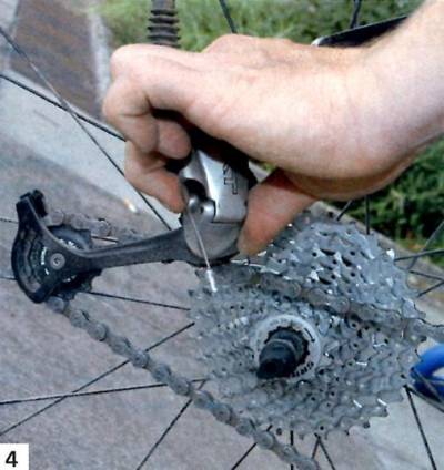 4. Оттяни задний переключатель назад так, чтобы верхний его ролик оказался позади оси колеса.