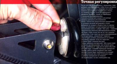 После того, как ты разобрался с пружинами, пора добавить демпфирования, чтобы точно настроить работу подвески. Если у амортера или вилки имеются регулируемые компрессия и отскок, ты сможешь весьма точно контролировать движение подвески, только не переборщи с излишним демпфированием.