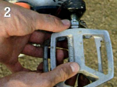 Совет: часто для того, чтобы открутить педаль, нужно приложить большое усилие. Этого можно избежать — за сутки до того, как соберёшься менять педали, залей их WD-40, и используй подседельник в качестве усилителя ключа. И помни — первый рывок должен быть резким, тогда педаль открутится легко.