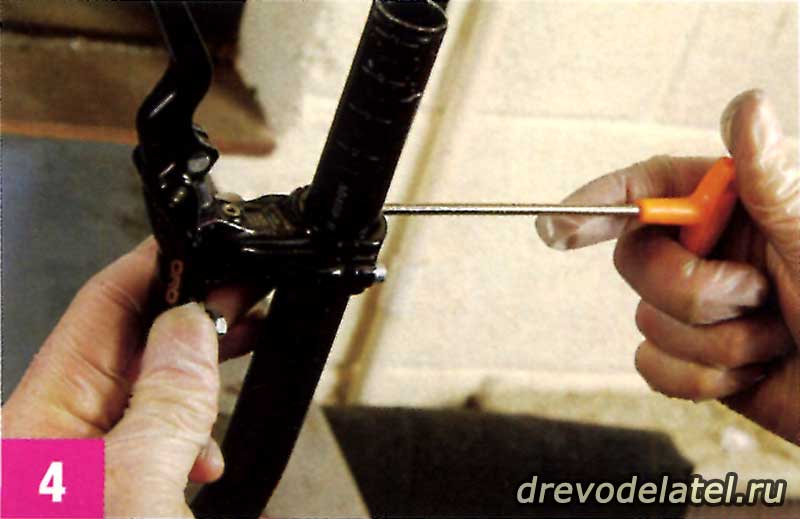 Чтобы убедиться в том, что твоя система не переполнена тормозной жидкостью, поставь в калипер пару новеньких колодок и пластиковую распорку, и открой верхний болт для прокачки (на ручке). Если в тормоз было залито слишком много жидкости, то её избыток оттуда вытечет. Закрути болт для прокачки и вытри тормозуху с ручки. Теперь в системе правильное количество тормозной жидкости.