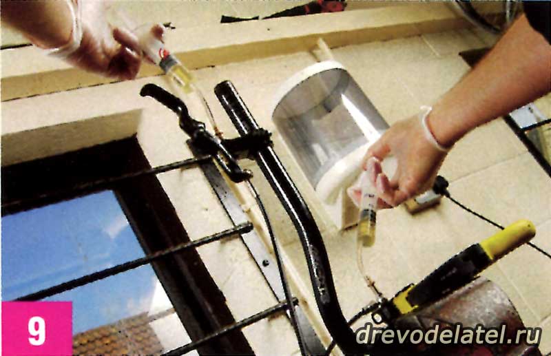 Таким же образом закрой вентиль шприца на ручке и сними его. Потом установи прокладку и болт. Опять же, вытри ручку бумажным полотенцем.