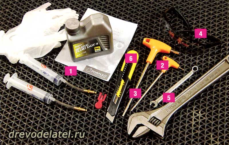 01. Комплект для прокачки, тормозная жидкость и инструкция (в зависимости от модели тормозов всегда проверяй, какая нужна жидкость — DOT или минеральное масло)