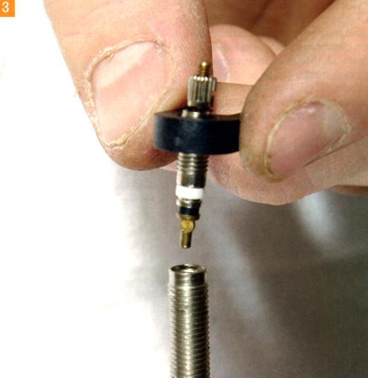 5. Плотно вкрути клапан обратно в ниппель, чтобы герметик не вытекал.