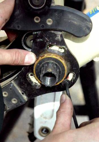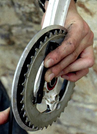 1. Для начала сними шатуны и звезду с системы. Иногда приходится откручивать и каретку, чтобы поставить «банан». Проставь звезду системы с внутренней стороны от лапок на место средней звезды, а на место большой прикрути рокринг. На MRP System 1 поставь второй рокринг с внутренней стороны, прямо на звезду через специальные проставки. На MRP System 2 она прикручивается к банану и неподвижно закрепляется на нём. Убедись, что края с фасками установлены к звезде. В MRP System 1, особенно на хардтейле или 4-рычажной подвеске, внутренний блин может задевать «банан». В этом случае собираешь немного иначе. Звезду ставишь на место большой звезды, наружную шайбу прямо на неё через проставки, а внутреннюю на место средней звезды. Если это не получится, тебе понадобится более длинная ось каретки или System 2.