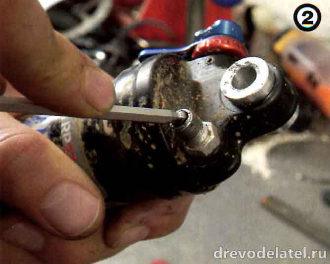 2. Обязательно выпусти весь воздух, открыв все клапаны. Если ты не сделаешь этого, рискуешь получить серьёзные травмы или заляпать маслом потолок и стены комнаты. Для этого нужно нажать на клапан Шредера обратной стороной колпачка или шариком 4-миллиметрового ключа с шариком на конце (в идеале). О том, что весь воздух выпущен, будет свидетельствовать возможность сжать и разжать амортизатор руками без особых усилий. Если в этой ситуации он будет сам втягиваться внутрь себя, отправь его в сервисный центр, поскольку негативная камера оказалась перекаченной и потребует особого внимания специалистов.