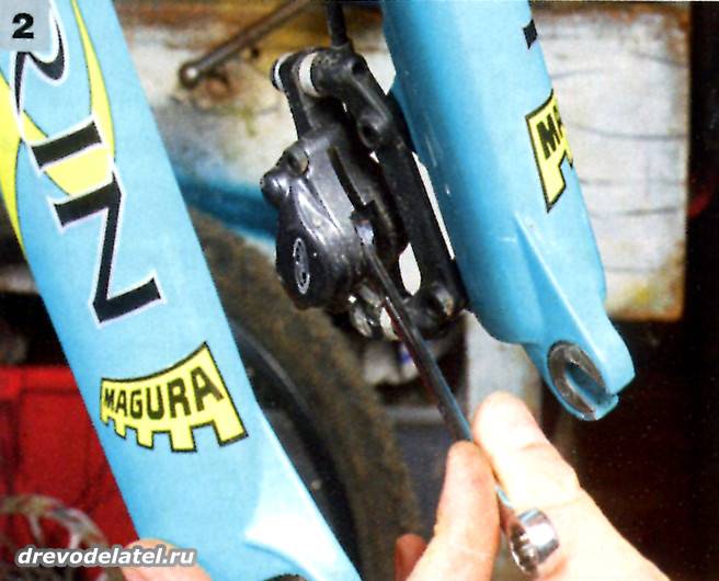 1. Сними колёса. Различные производители по-разному крепят тормозные колодки в калипере. Shimano пользуются шплинтами или болтами под шестигранник, тогда как другие, например, Hayes, полагаются на пружинки. Так что вынь шплинты с помощью плоскогубцев или оттяни колодки к центру калипера за специальные ушки, а затем вытащи их. Снятие должно происходить легко. Сделай то же самое с другой стороной, только не потеряй держатель пружинки, если он есть.