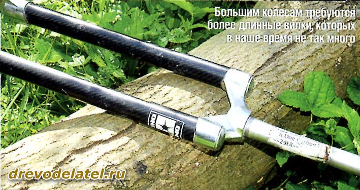 Кроме того, байки с большими колёсами часто делают с короткими рулевыми стаканами и более низкими выносами, чтобы подогнать их под длинные вилки.