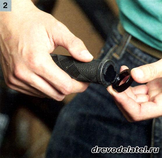 1. Сначала сними заглушки руля, а затем старые грипсы. Возможно, тебе потребуется аккуратно засунуть под грипсы отвёртку и залить немного воды в образовавшуюся щель, чтобы грипсы легче слезли с руля.