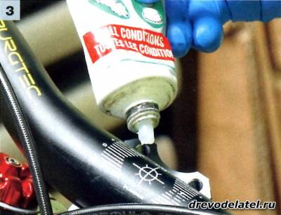 3. Нанеси на область крепления руля немного тефлоновой смазки, закрыв всю её поверхность, а затем убери излишки.